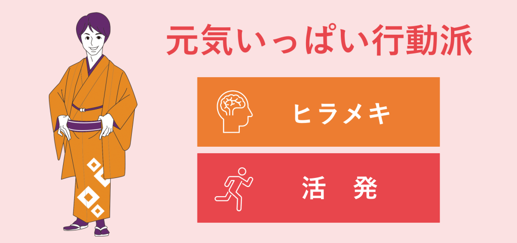 ワクワクすることや楽しいことが大好き。細かいことはあまり気にしないで、パッとひらめくとすぐに行動に移します。周りをうまく巻き込むムードメーカー的存在。